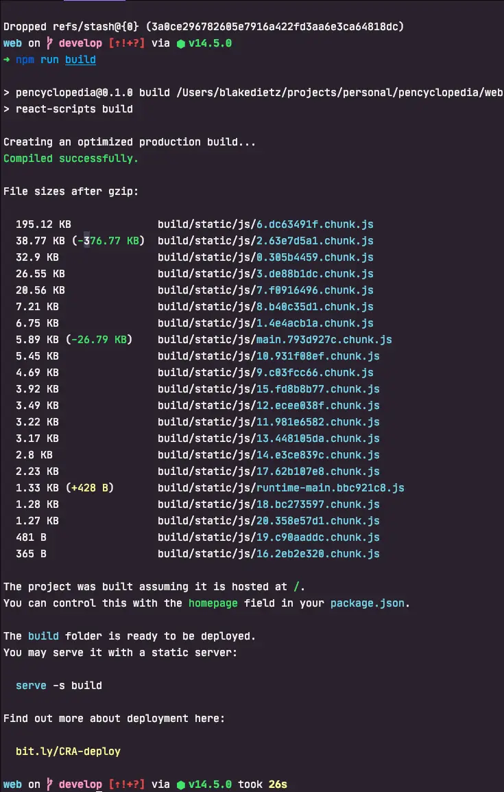 Running npm run build now shows a different output from before.