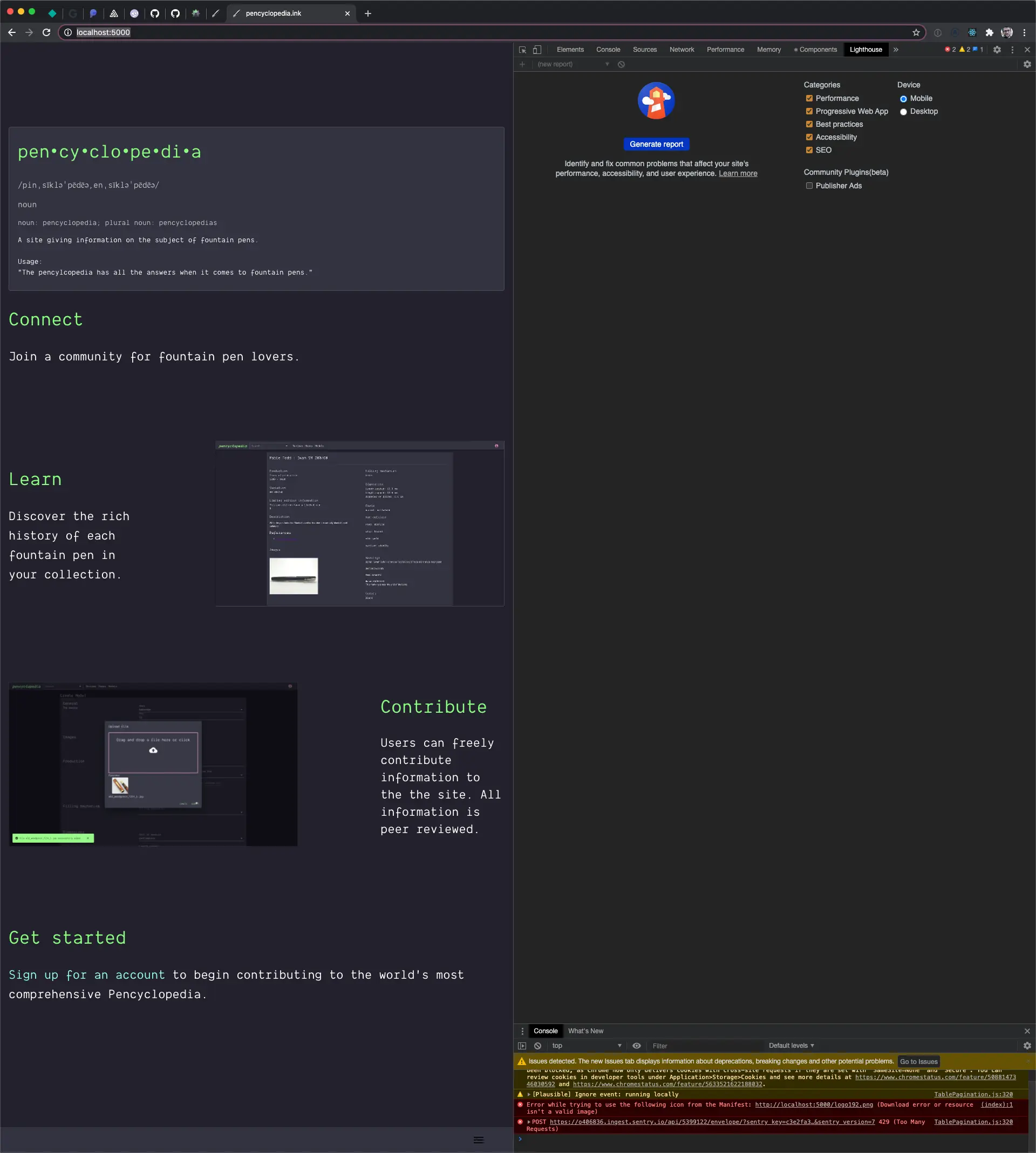 For this guide we'll be analyzing performance for https://pencyclopedia.ink. This is a personal SaaS project that I've launched, so it's a little more real world than your usual tutorial. You'll learn about using Lighthouse to analyze application performance along with a couple of practices for improving React application performance.