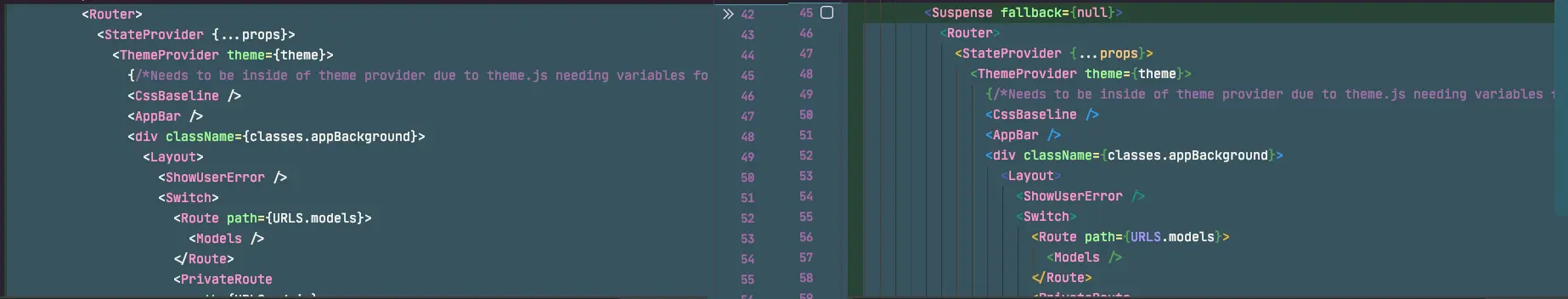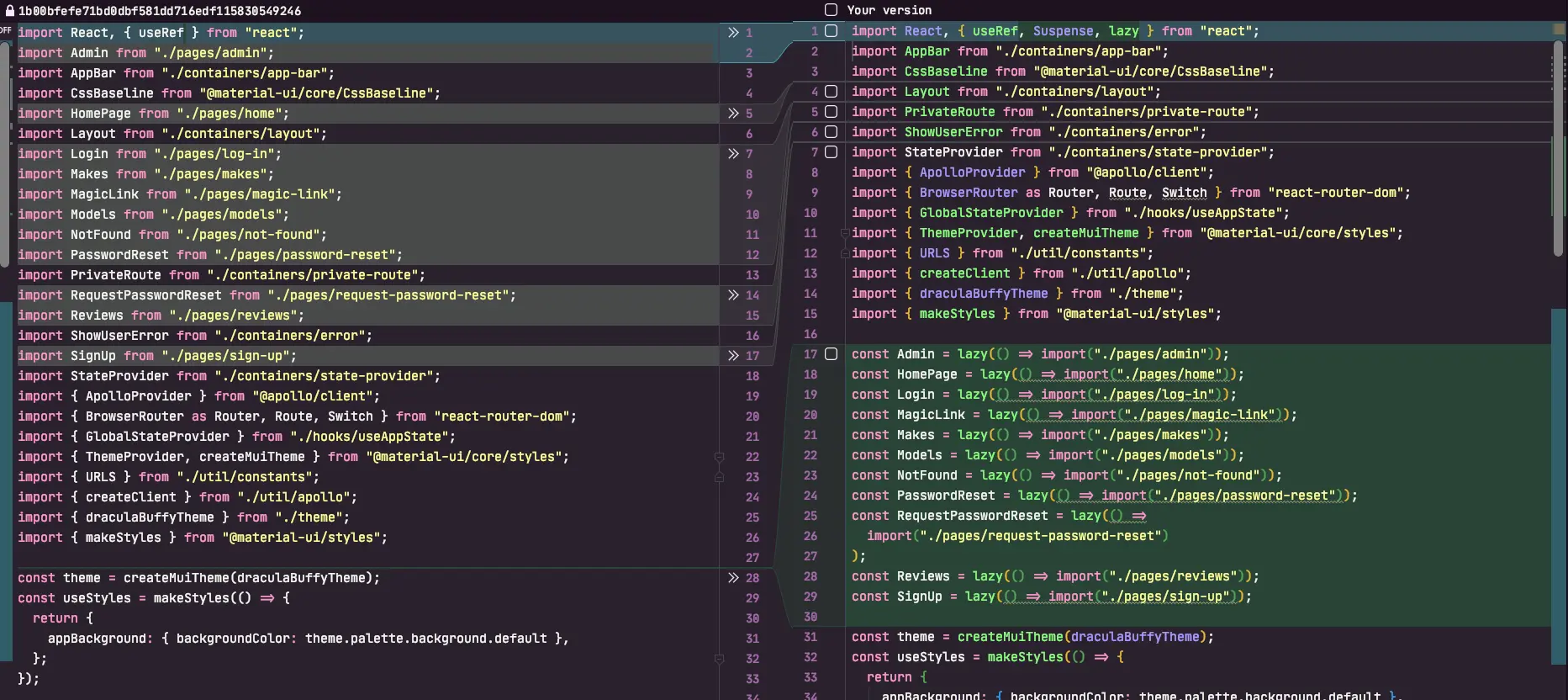 Anything that was a top-level route component was converted from the ESModule language import syntax to use the
